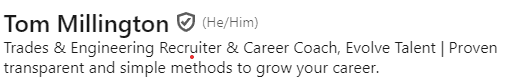 Your headline is the bit that sits under your name and tells people who you are. I like to structure it as: Title, Industry and Company | Short description of your skills.